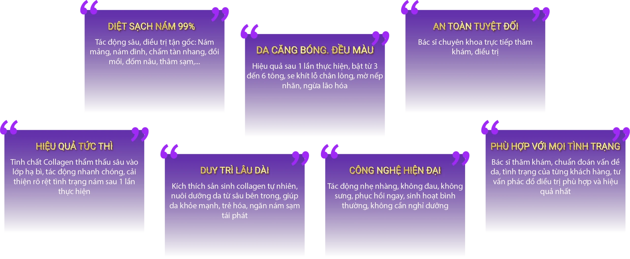 Tác động sâu, điều trị tận gốc: Nám mảng, nám đinh, chấm tàn nhang, đồi mồi, đốm nâu, thâm sạm,...